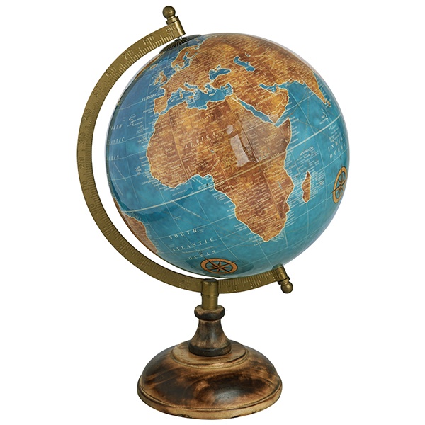 גלובוס מבריק בקוטר 20סמ , בסיס שילוב מתכת ועץ ,גובה 33 ס”מ דגם 4435