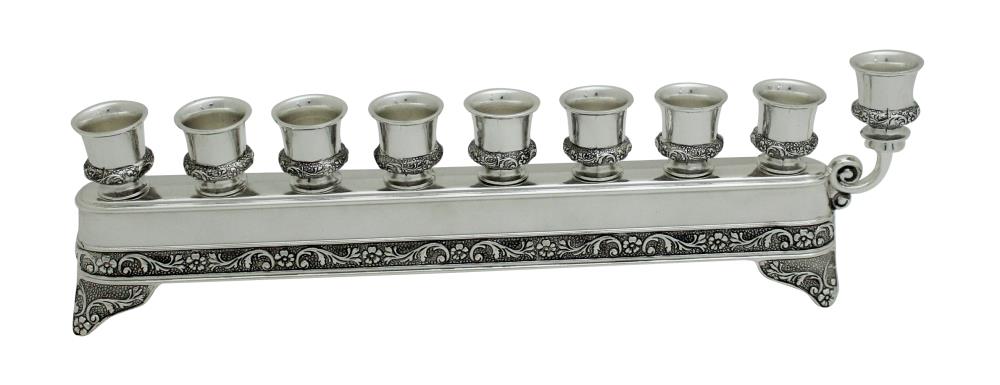 חנוכיה ניקל מהודרת “עיטורים” 29×10 ס”מ