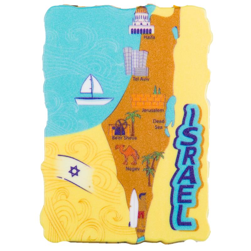 מגנט פלסטיק מפת ארץ ישראל באנגלית צבעוני 5.5*8 ס”מ