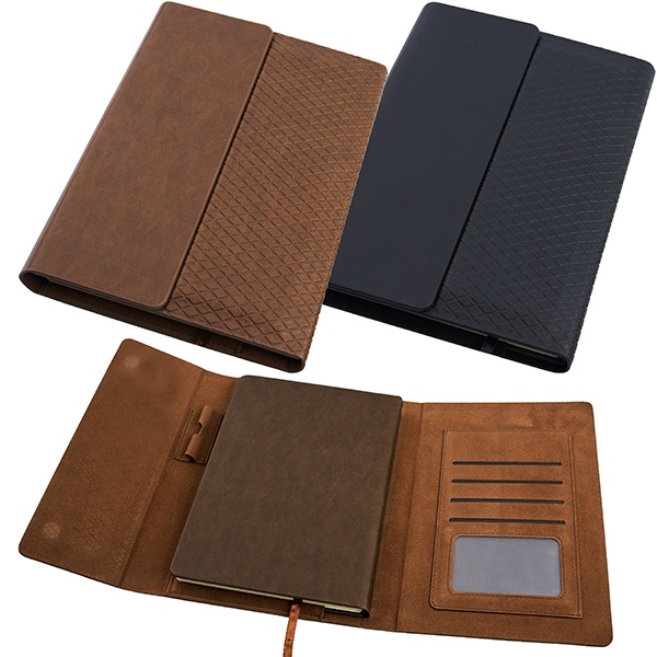 מחברת עסקים A5 עם תא קדמי לסלולאר, כרטיסי ביקור ועט