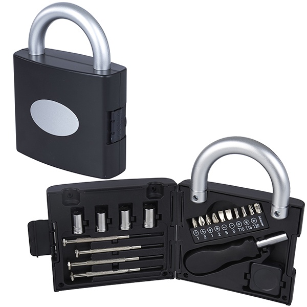 ערכת כלים לבית/לרכב 20 חלקים במארז בצורת “מנעול” שחור קטן 16ס”מ דגם 4504