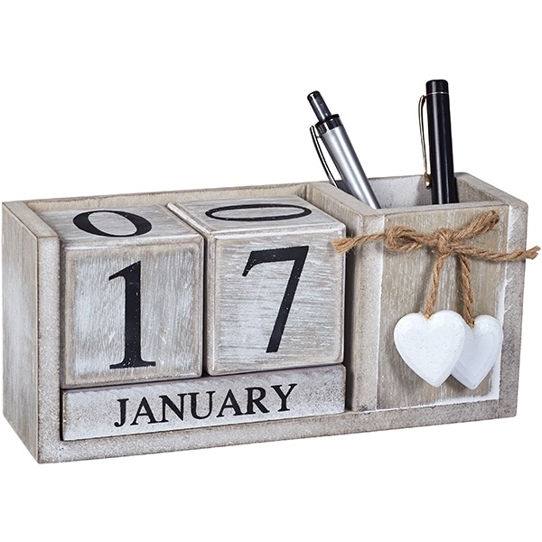 קלנדר עץ קוביות שולחני עם כוס לעטים 21ס”מ דגם 4218