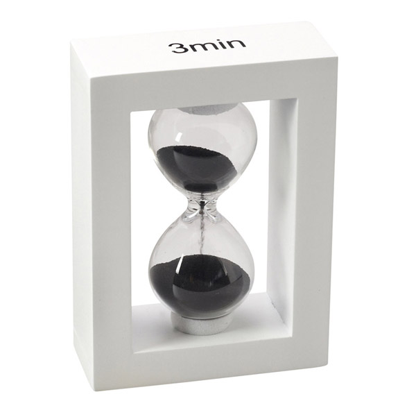 שעון חול קטן, מסגרת עץ לבנה 3 דק’ , 11סמ’ דגם 3560