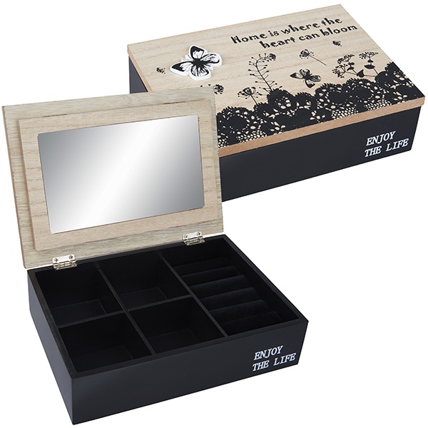 "Enjoy the Life" קופסת תכשיטים מהודרת מעץ עיטורי פרחים